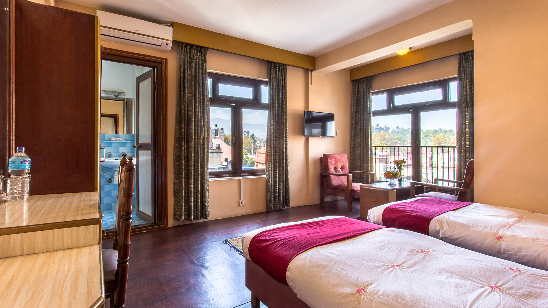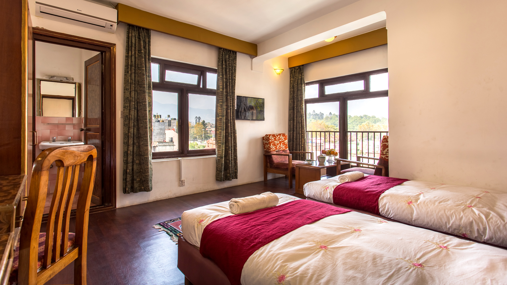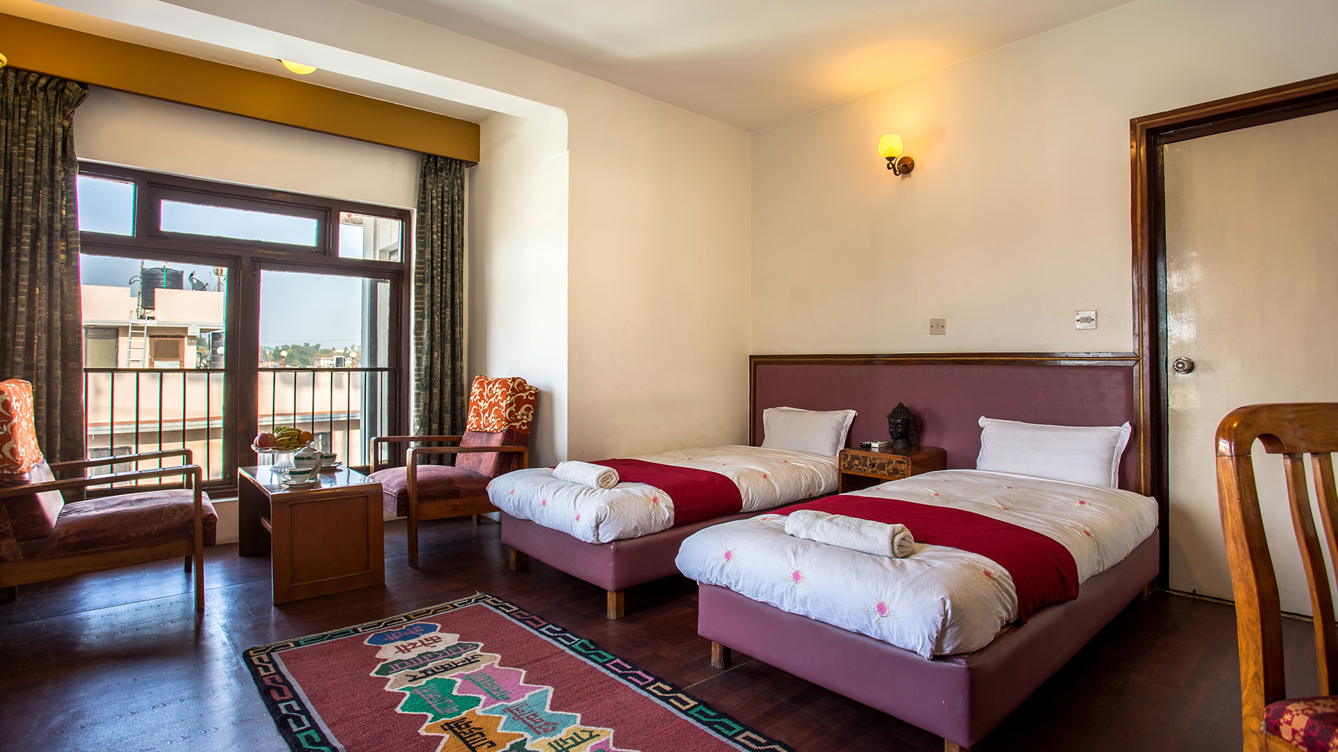 Stylish, comfortable and clean, our sunrise deluxe rooms are located in front of the building, waking you up with beautitul sunrise and giving you the best view of Pasupathinath Temple, Himalayan range and glimpse of Kathmandu City. These rooms offer you a true sense of relaxation equipped with the Japanese bathtub called Ofuro.